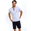 Pánske pyžamo s krátkym rukávom a krátkymi nohavicami značky Il Granchio. Tričko je jednofarebné;má výstrih jemne do tvaru písmena "V" doplnené o gombíkovú légu na 2 gombíky. Na ľavej strane hrude sa nachádza potlač loga značky. Nohavice majú na sebe potlač nepravidelných pruhov. Nohavice majú v páse pohodlnú gumu. Príjemné pyžamo na letné dni.