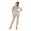 Dámske pyžamo s krátkym rukávom a 3/4 nohavicami značky De Lafense. Tričko má polkruhový výstrih; zdobený saténovým lemom a veľkou saténovou mašľou pod ktorou začínajú volány. Rukávy sú rovnako olemované saténom. Nohavice majú v páse pohodlnú gumu. Krásne a jemné pyžamo na každú noc.