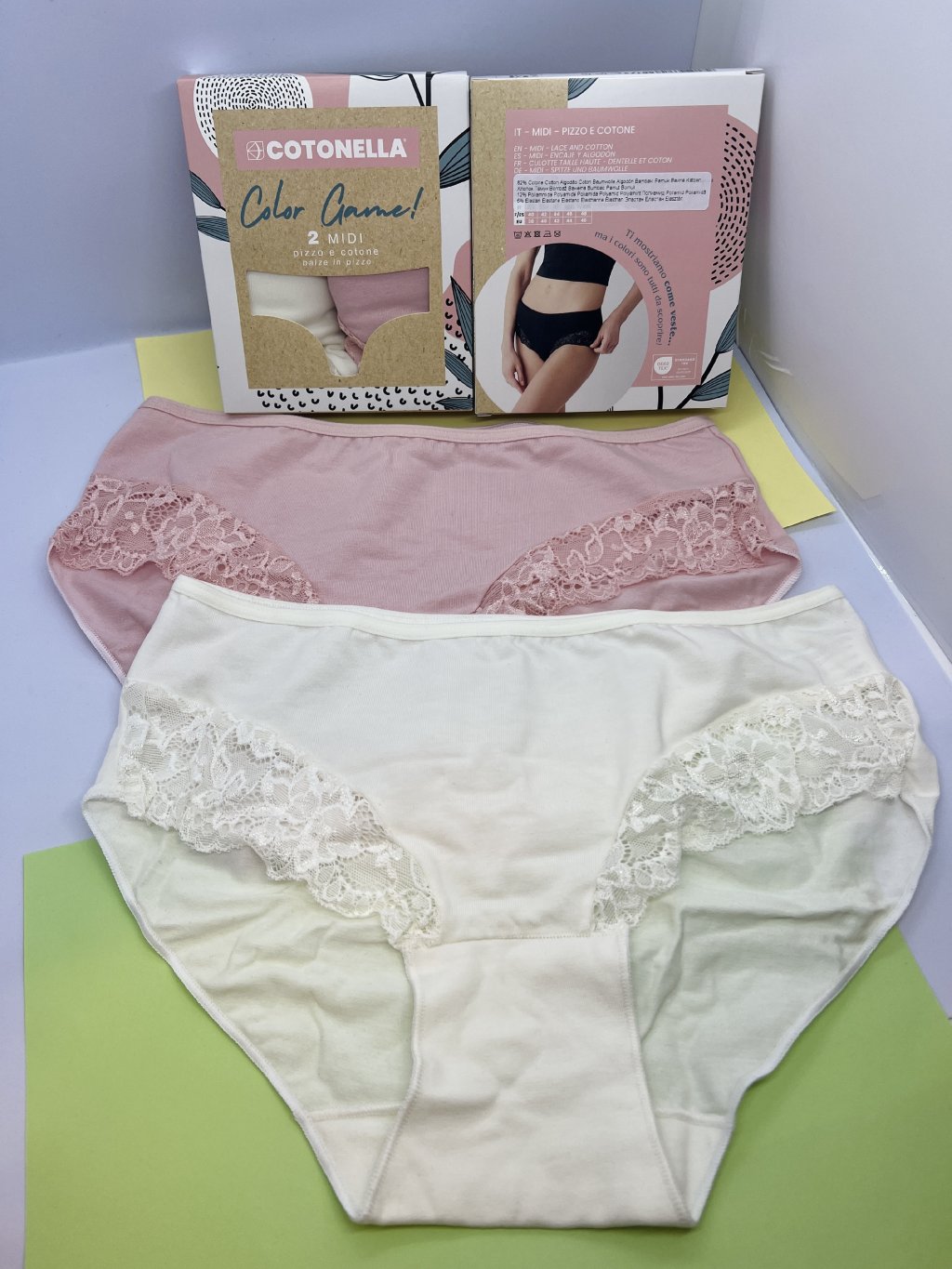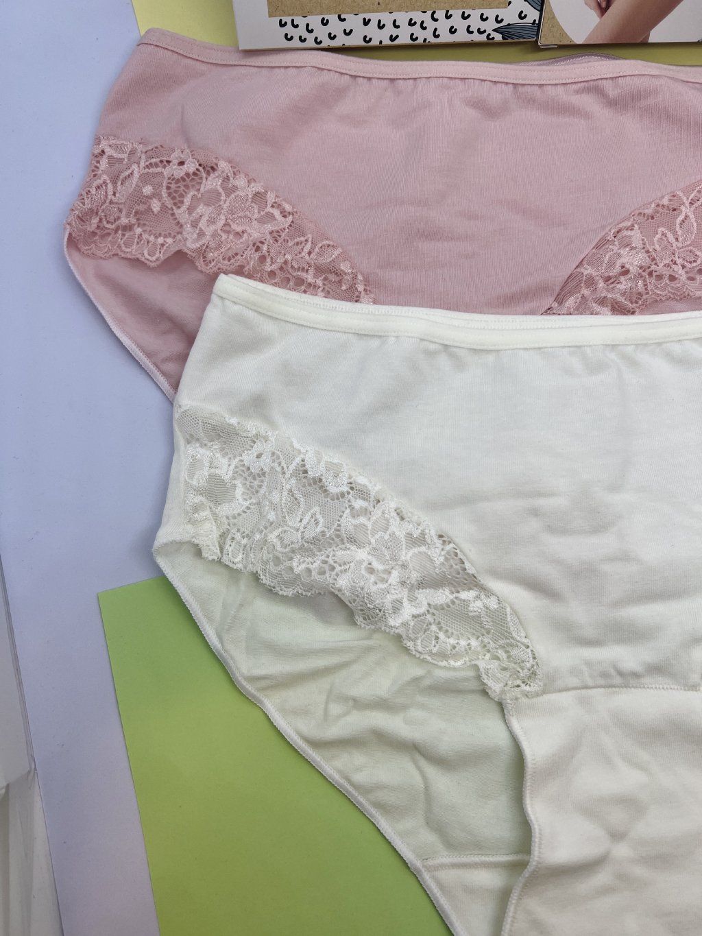 Midi bavlnené nohavičky po bokoch s čipkou. V balení sa nachádzajú 2ks - 1x krémová + 1x bledoružová. Cena je uvedená za krabičku- 2kusy (mix farieb ako na fotke produktu). Veľkostná tabuľka nižšie.