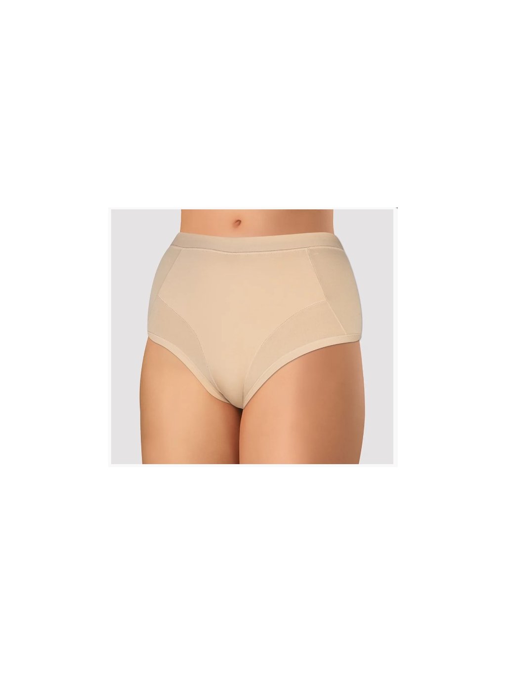 Dámske jemne sťahovacie/tvarujúce nohavičky vyššieho strihu. Nohavičky sú vyrobené z veľmi kvalitnej elastickej bavlny s prímesou vlákna Tactel, ktoré dodáva materiálu hebkosť a priedušnosť. Materiál sa skvele prispôsobí postave a drží stály tvar bielizne. Predný diel nohavičiek je zdvojený, čím sa dosiahne ľahšia podpora spodného bruška, ktoré jemne vyhladí siluetu a skryje drobné nedostatky. Vďaka širokému lemu v páse ideálne priliehajú k telu a sú veľmi pohodlné. Komfortný lem okolo nôh zaručuje, že sa nohavičky nezarezávajú do stehien. Bavlnený klin.