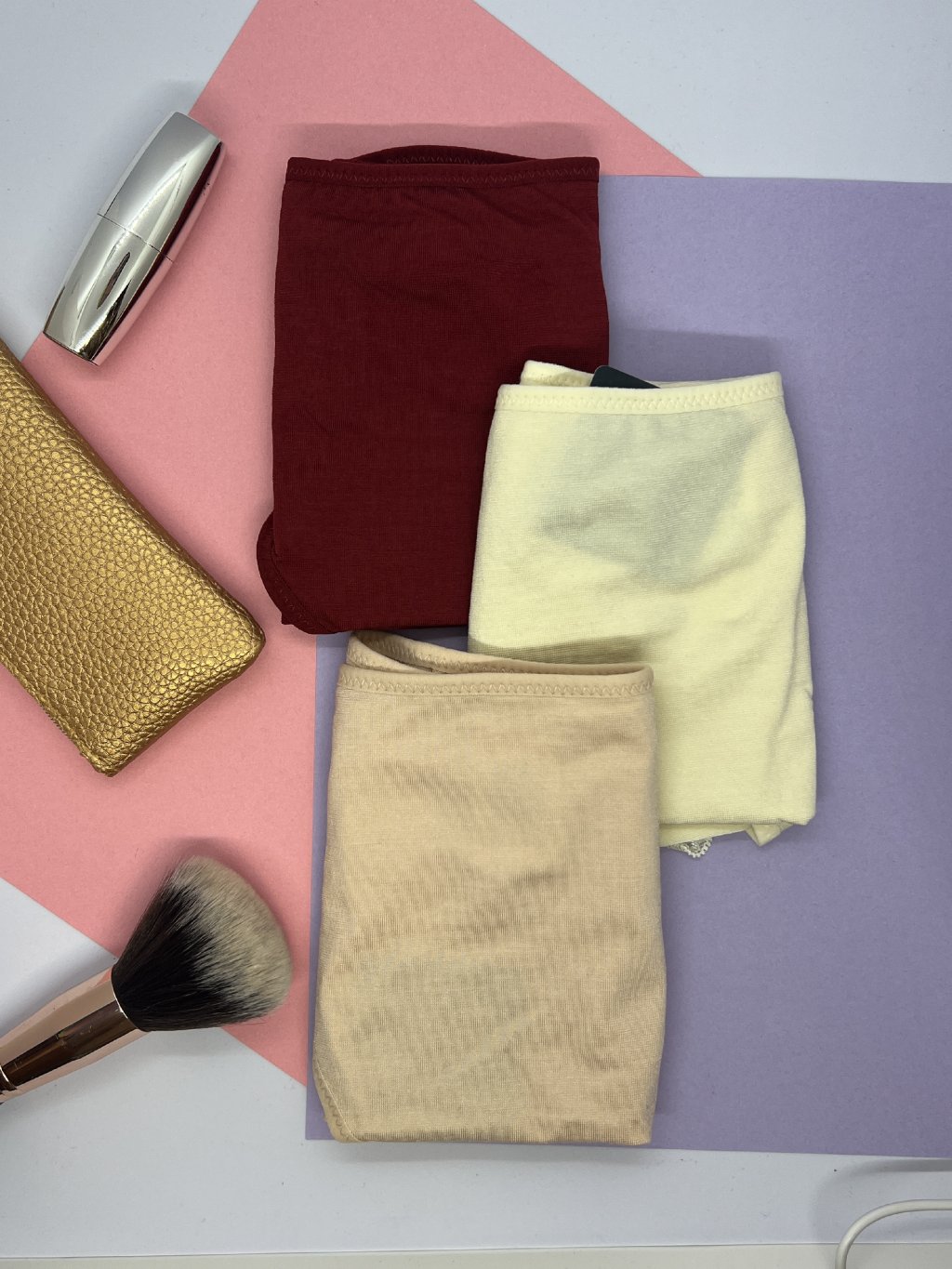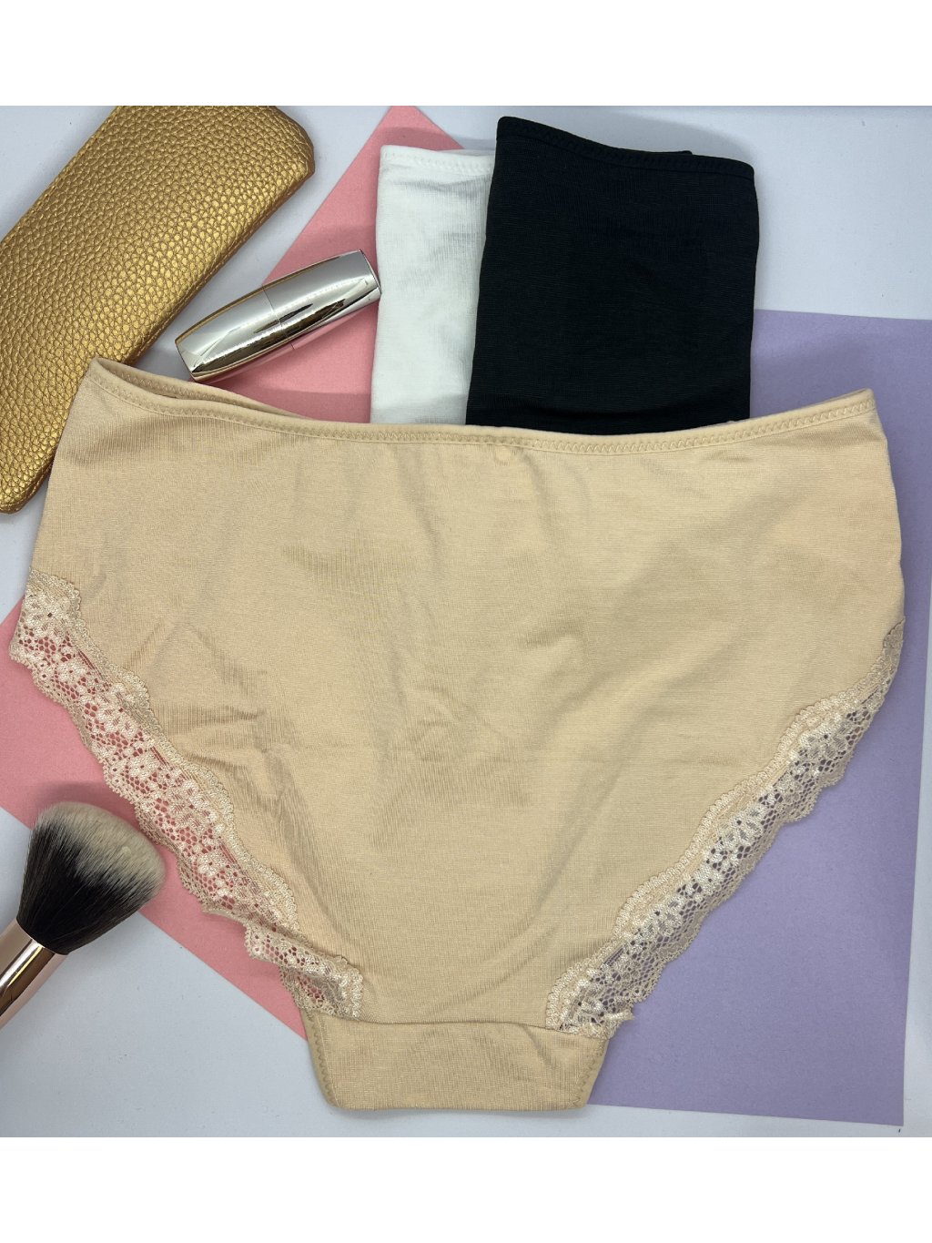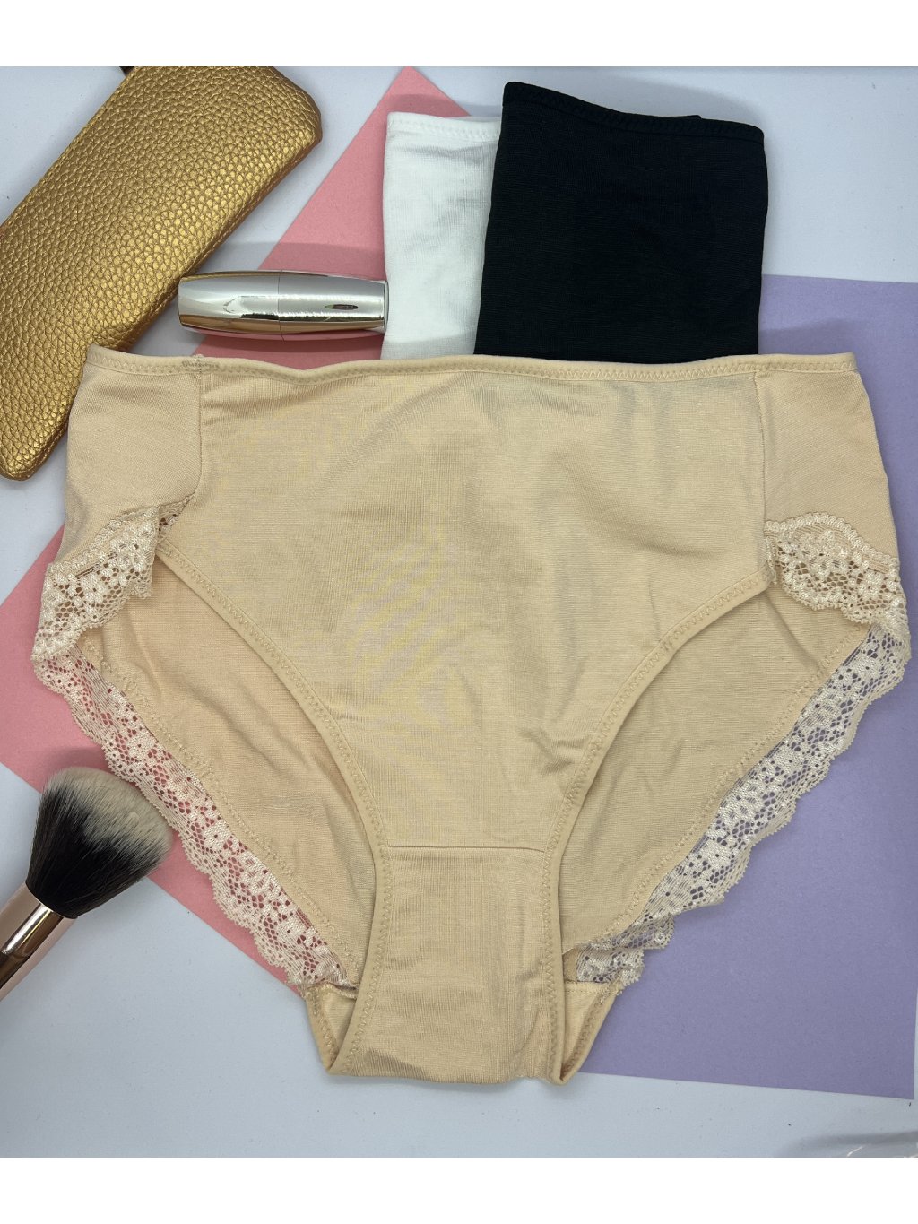 Klasické vyššie midi nohavičky, vzadu ukončené jemnou čipkou. V páse ukončené tenkou gumičkou. 3 kusové balenie ( mix rôznych farieb)