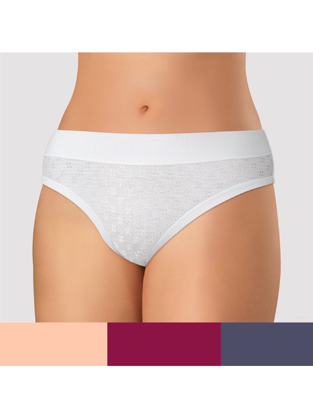 Klasické nohavičky značky Andrie. Nohavičky sú vyrobené z kvalitnej bavlny a jemného tencelu s prímesou elastanu pre väčšiu pružnosť tkaniny a väčšie pohodlie. Na prednom diele je pekný žakár a zadný diel je hladký. V širokom páse a okolo nohavičiek je všitá pohodlná gumička. V rozkroku sú nohavičky doplnené o bavlnený klin.