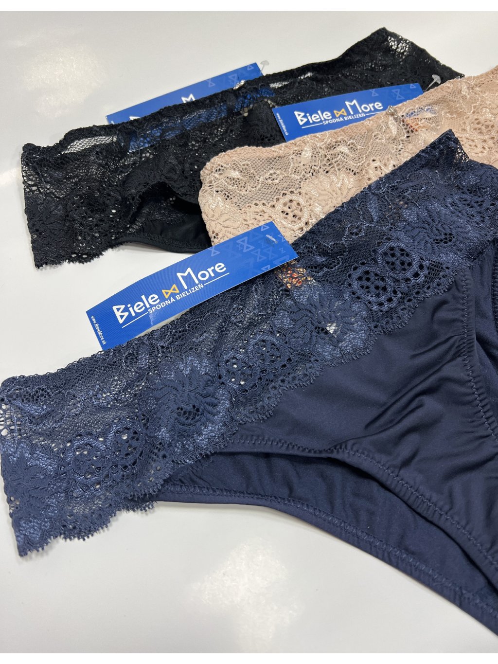 Dámske nohavičky klasického strihu od značky Leilieve sú vyrobené z príjemného materiálu. Horná časť nohavičiek okolo pásu je z jemnej priehľadnej čipky; spodná časť je z nepriehľadného mikrovlákna. Na prednej časti nohavičiek sa nachádza ozdoba s logom výrobcu. Do vnútornej časti nohavičiek je vsadený bavlnený klin pre komfortné nosenie.