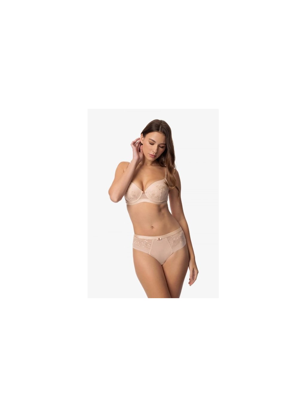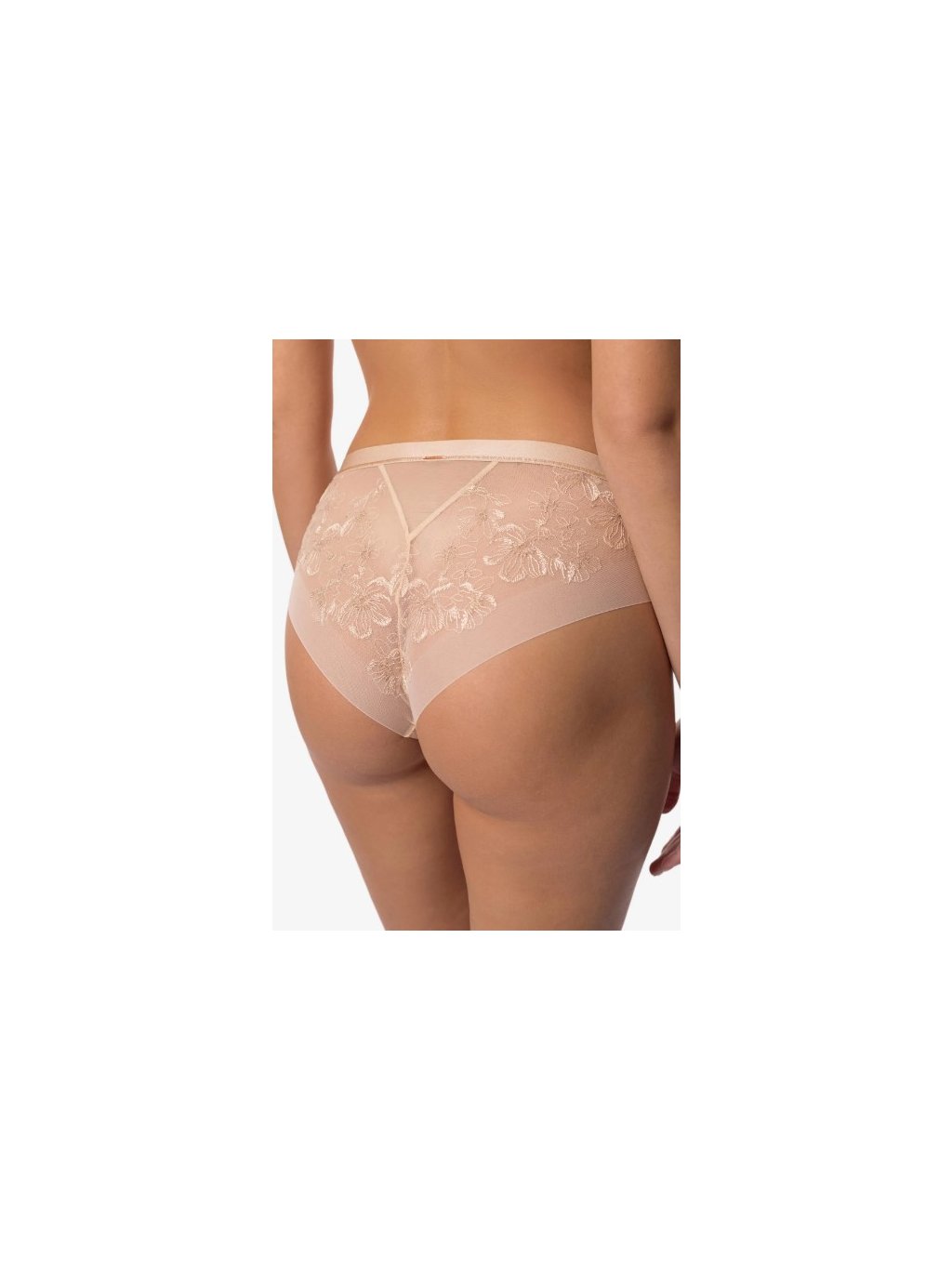 Nohavičky brazílskeho strihu so stredne vysokým pásom. Jemná výšivka v telových tónoch splýva s pokožkou a je zvýraznená decentne trblietavými zlatými detailmi. SERENE sú vytvorené pre ženu, ktorá oceňuje pokojnú eleganciu a jemné spracovanie. Rose gold- detaily podčiarkujú eleganciu. Možnosť dokúpiť aj podprsenku v rovnakom dizajne. Produkt bol navrhnutý a vyvinutý v Estónsku!