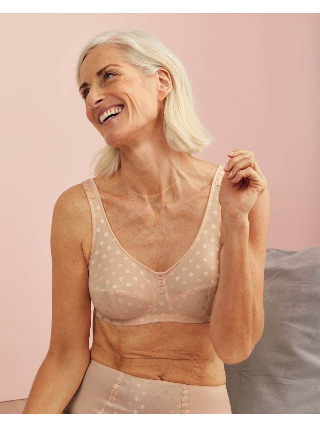 Chirurgická podprsenka Airita od značky Anita Care je vhodná pre ženy po čiastočnej operácii alebo úprave poprsia. Na oboch stranách podprsenky sú obojstranné kapsičky vyrobené z jemného elastického tylu. Košíky majú trojdielny strih z pevného a priedušného žakárového materiálu. Ramienka sú zdobené jemnými stužkami s výšivkou. zadný diel podprsenky je vyrobený z pevného a priedušného materiálu.