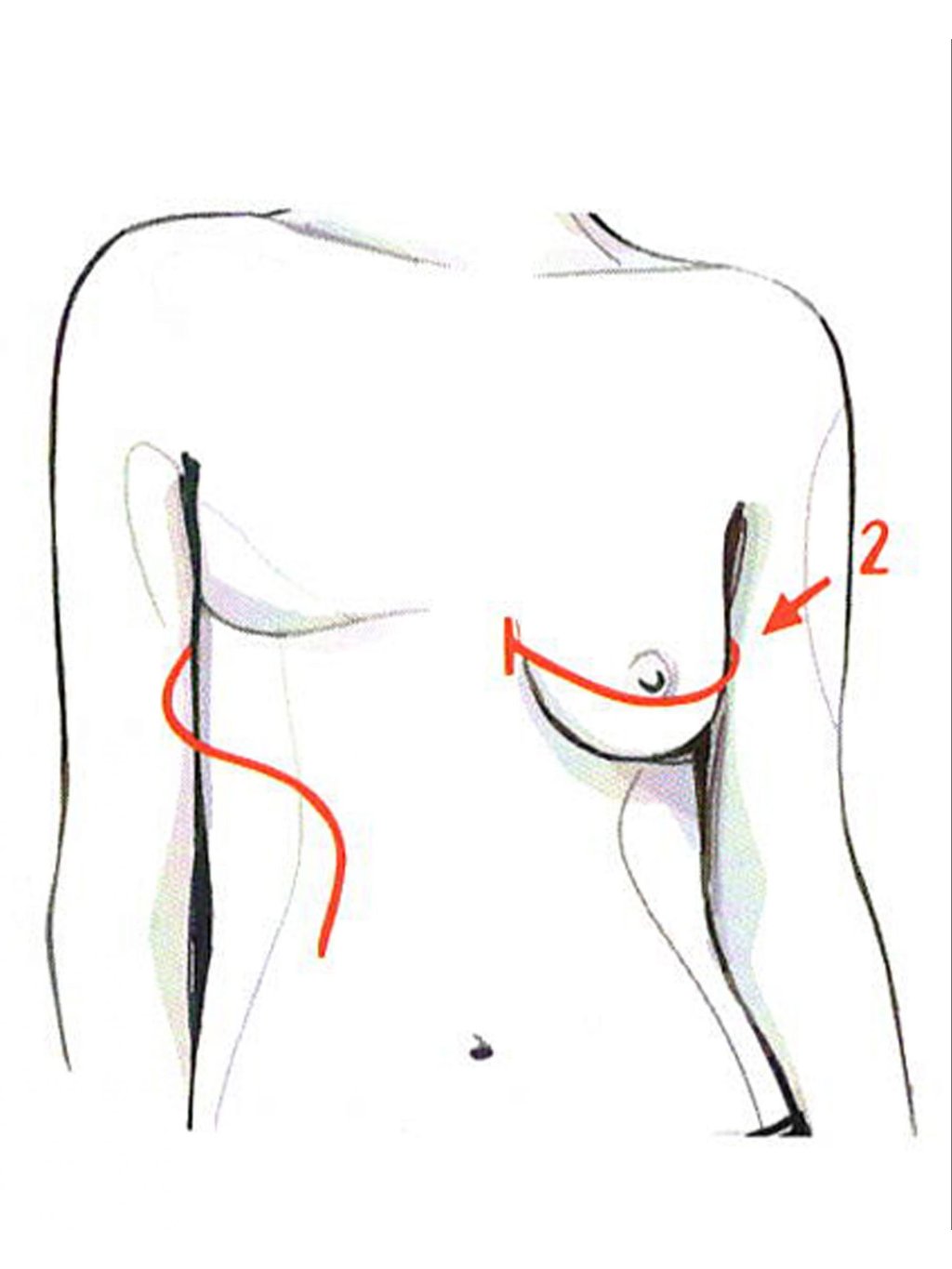 • obvod cez prsia - nahý zdravý prsník musí byť zľahka nadvihnutý. Odmerajte polovicu obvodu tela (od hrudnej kosti do stredu chrbtice). Od nameranej hodnoty odčítajte 2 cm a výslednú hodnotu vynásobte dvomi.