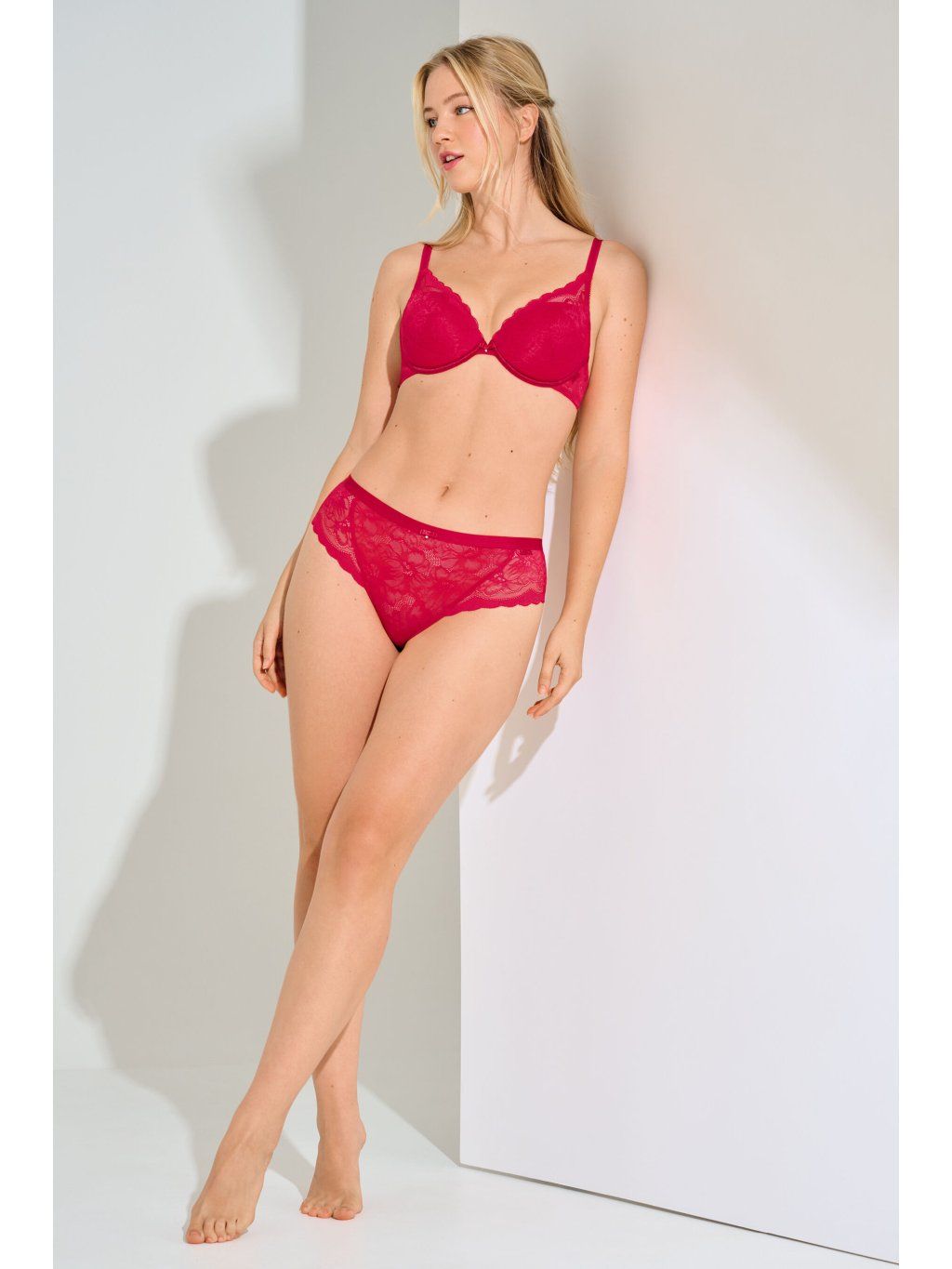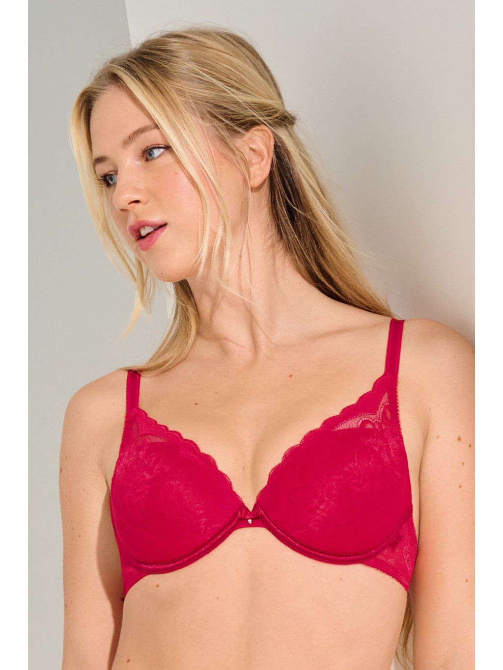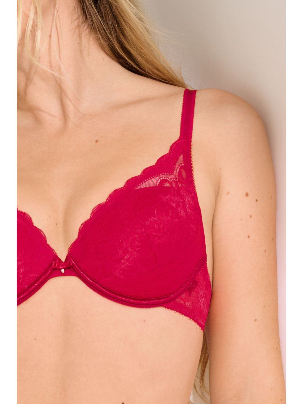 Elegantná a zvodná bielizeň so správnou dávkou čipky. Push-up podprsenka prsia nadvihne a zaistí výrazný dekolt, košíčky sú nižšie strihané a sú tým pádom skvelou voľbou pod hlboké výstrihy. Podprsenka kombinuje atraktívnu elastickú čipku s elastickou čipkovou látkou, a je navrhnutá v štýlovom strihu bralette.