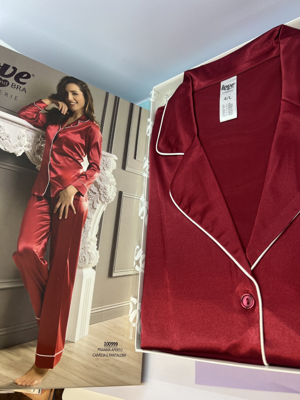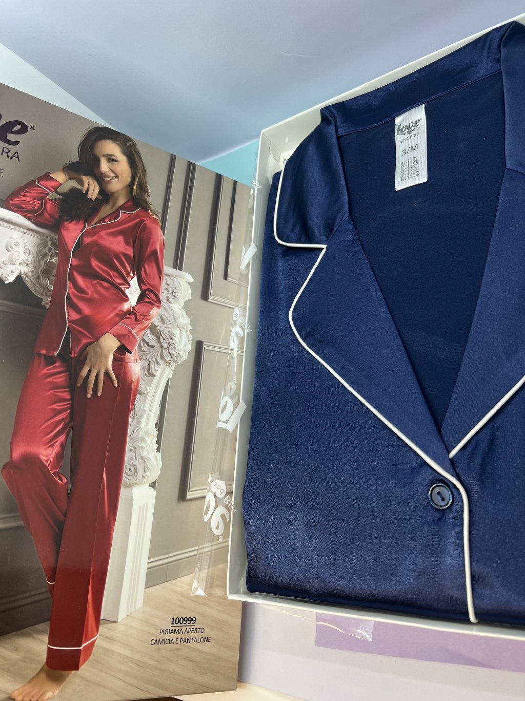 Dámske dvojdielne elegantné lesklé pyžamo olemované bielou paspulkou, na zapínanie na gombíky. Pyžamko je mierne chladivé, veľmi elegatné a príjemné na dotyk . Vhodné ako darček, balené v darčekovej krabičke. Talianska značka Infiore.