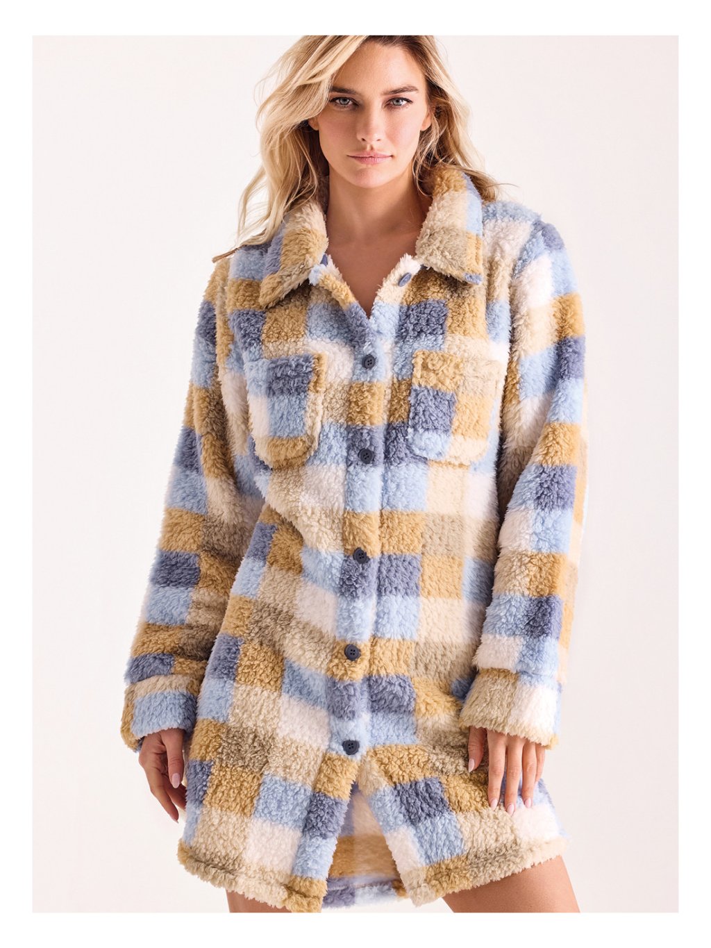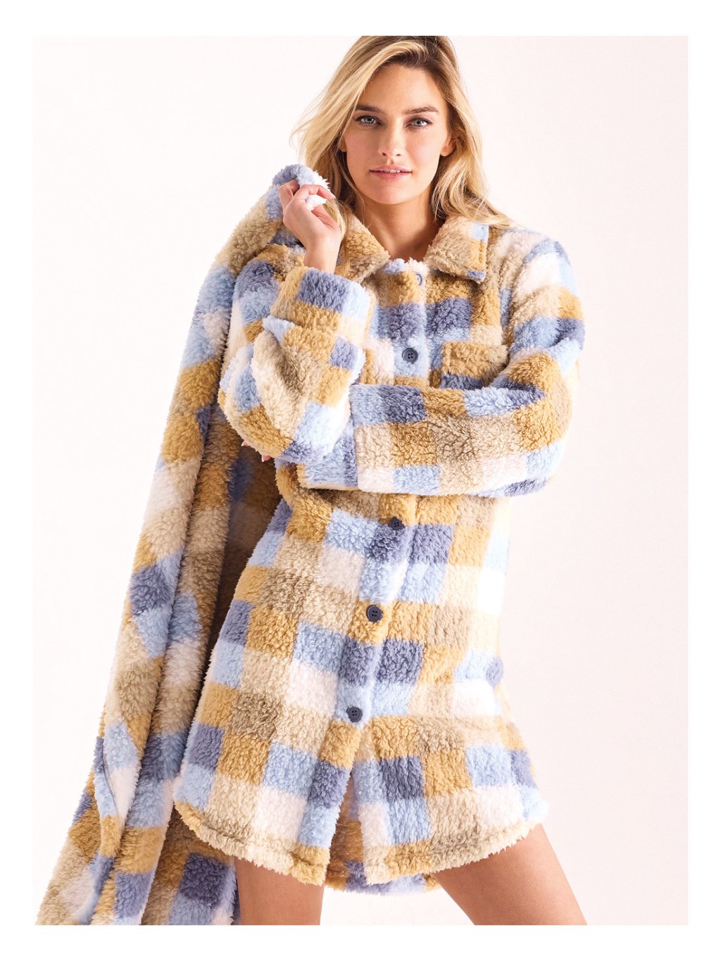 Župan s gombíkmi v jemnej farbe so vzorom kociek. SUPERMADRAS