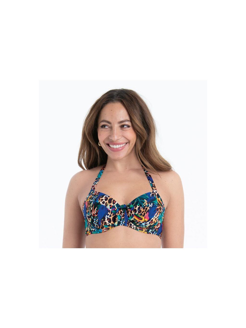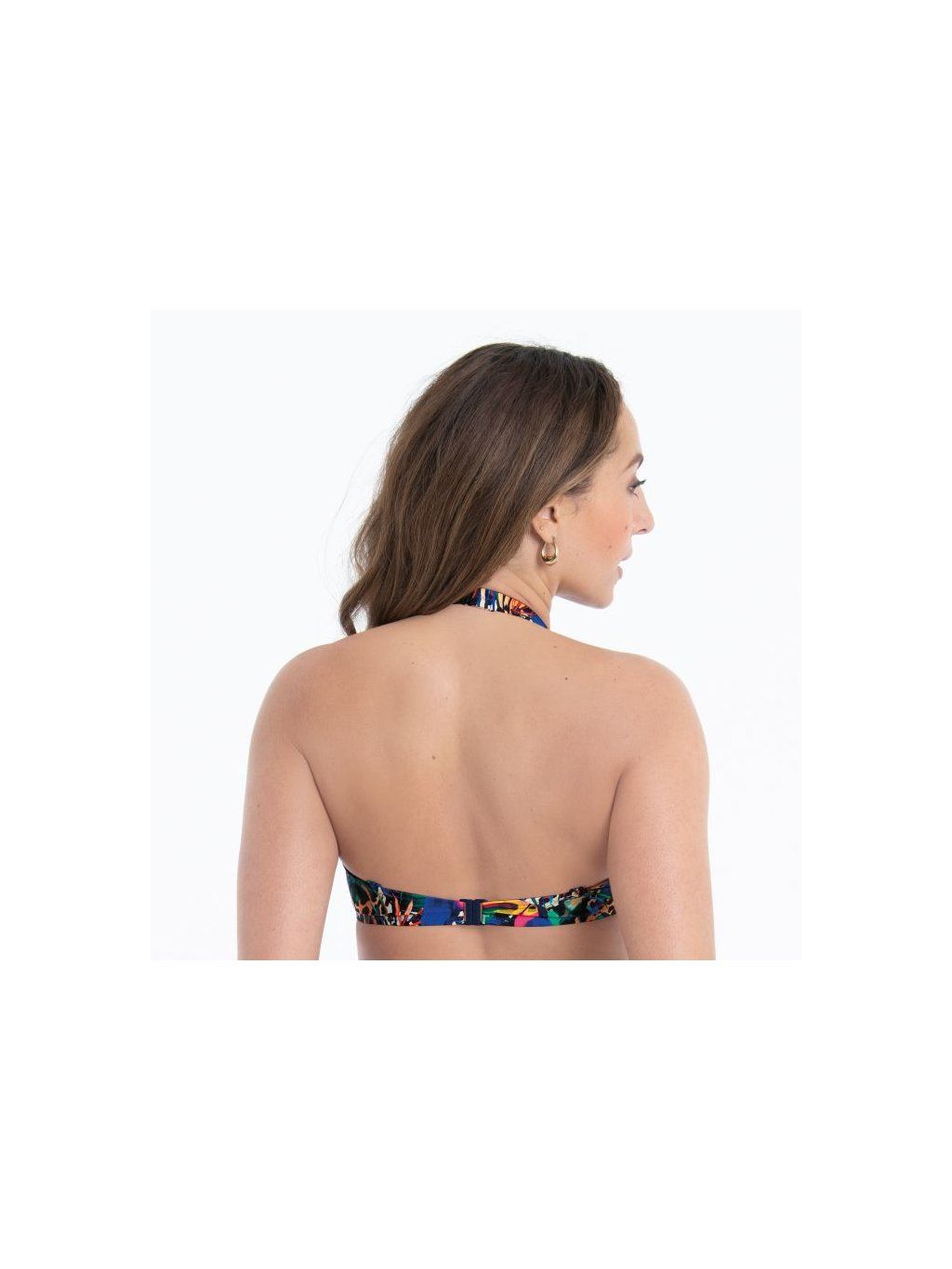 Vrchný diel bikín LEANDRA je plný a poskytuje dokonalú oporu až do veľkosti I. Má trojdielny košíček, hravú mašľu v strede a ramienka sa dajú ľahko premeniť na ramienka s dvoma klipsňami- a využiť ich okolo krku.