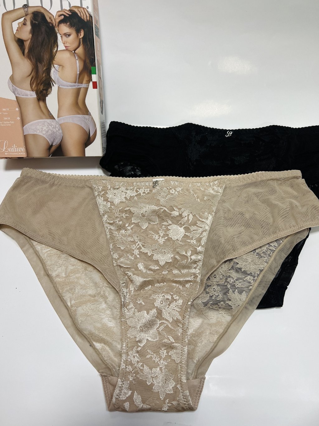 Luxusné dámske nohavičky značky Leilieve sú vytvorené v kombinácii jemného tylu a veľmi jemnej; nerušivej pritom elegantnej čipke; ktorá je vďaka svojmu spracovaniu výnimočne jemná. Zadná časť nohavičiek je tvorená jemnou čipkou.