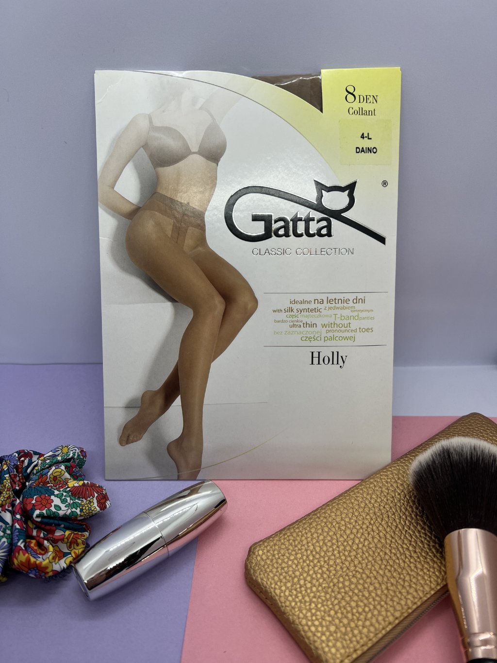 Tenkunké dámske pančuchy Holly od značky Gatta sú výnimočne jemné; bez zvýraznenia materiálu na prstoch. Poskytujú pocit komfortu a ľahkosti aj v letných mesiacoch alebo aj pre neviditeľný vzhľad. Nohavičková časť je typu T-band a má bavlnený klin. Pančuchy sú vhodné aj do sandálov.