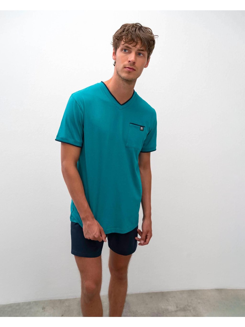 Pohodlné dvojdielne pánske pyžamo pre kvalitný spánok a voľný čas. Komplet pozostáva z jednofarebného s krátkym rukávom a s výstrihom do V; ktorý dopĺňajú jednofarebné šortky. Toto pánske pyžamo je vyrobené z vysoko kvalitnej; geneticky nemodifikovanej gréckej bavlny; ktorá poskytuje vysoké pohodlie; príjemný pocit na dotyk; priedušnosť; pružnosť a odolnosť.