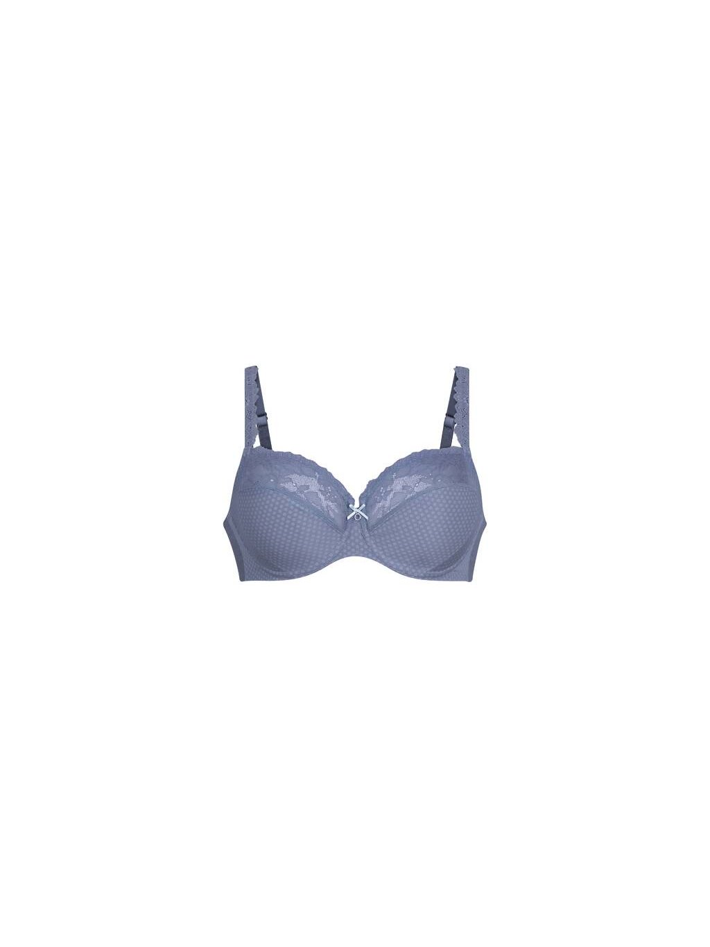 Tvarovaná podprsenka s plnými košíkmi, štvordielnymi košíčkami a podporným rámom. Kvetinová čipka z recyklovanej priadze, vystužený chrbát a elegantný ozdobný krúžok so saténovou mašľou zaisťujú oporu, pohodlie a ženskú eleganciu – aj vo väčších veľkostiach. Podrsenka je nevystužená , podšitá pre lepšiu pevnosť a podporu, má kostice.