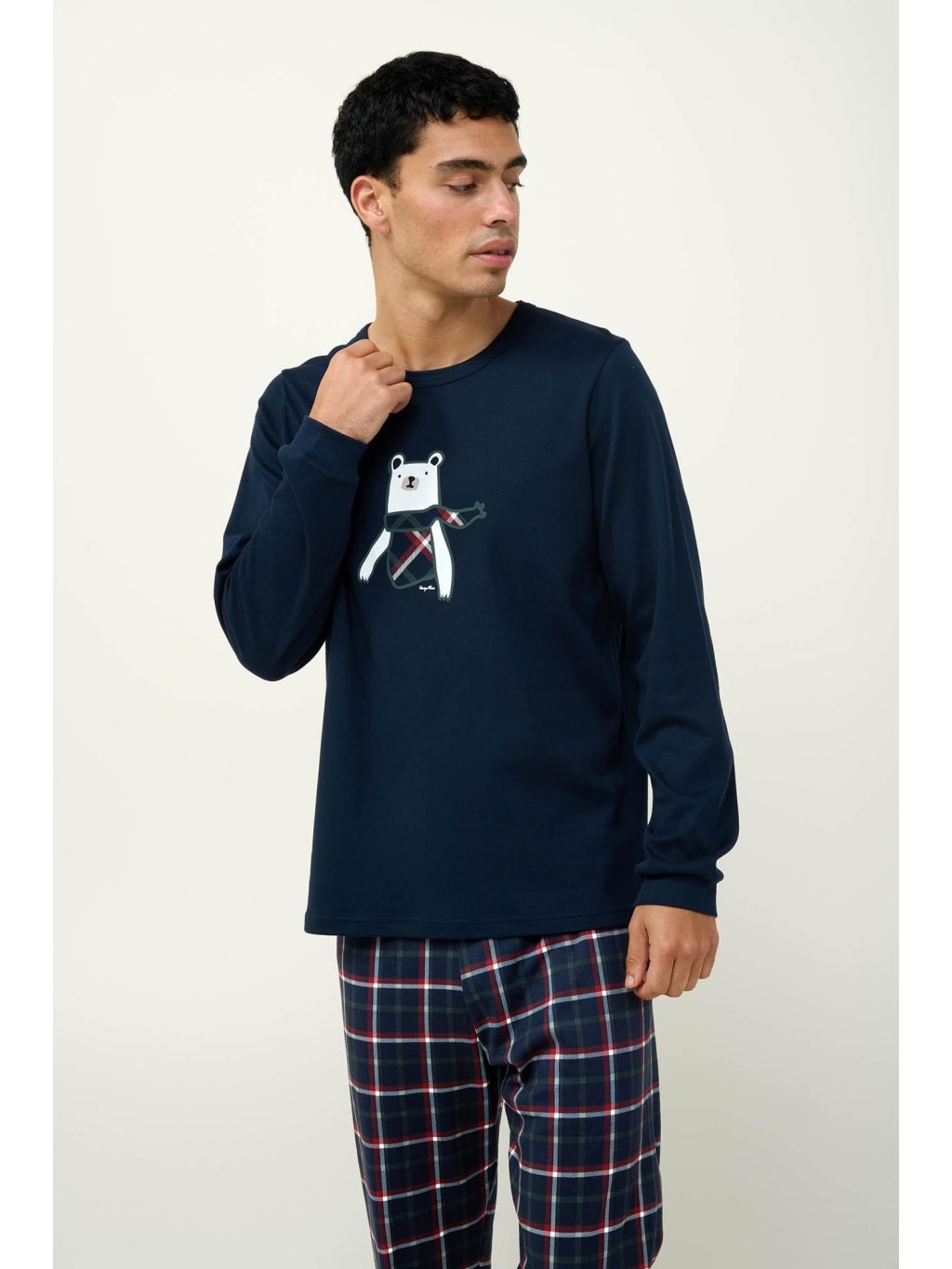 Dodajte zimným večerom hrejivý nádych a šarm s týmto pánskym pyžamom, ktoré je vyrobené z prvotriednej 100% bavlny interlock pre maximálnu mäkkosť a pohodlie. Vrchný diel s dlhým rukávom má príjemné manžety a hravý potlač medveďa v kockovanej šálu - to všetko prináša zimnú atmosféru. V kombinácii s nohavicami s manžetami v nadčasovom kockovanom vzore ponúka táto sada dokonalú kombináciu klasického štýlu a každodennej ľahkosti. Priedušná bavlna je ideálna na leňošenie alebo spanie a zaisťuje pohodlie.