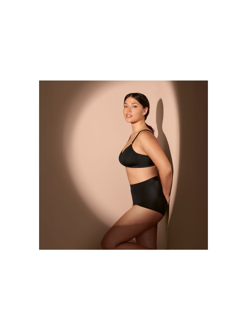 Nohavičky CLAIRE+ s pásom vyzerajú skvele a sú super pohodlné. Mäkká, elastická látka perfektne sedí a okraje nohavíc a pásu sú extra mäkké. Jemný lesk, vysoký strih a elegantný kontrastný pás robia z týchto nohavičiek ideálneho partnera. Perfektne sa hodia k podprsenkám s vyberateľnými nohavičkami zo série Claire. Sú prakticky neviditeľné pod oblečením a jednoducho sa pohodlne nosia.