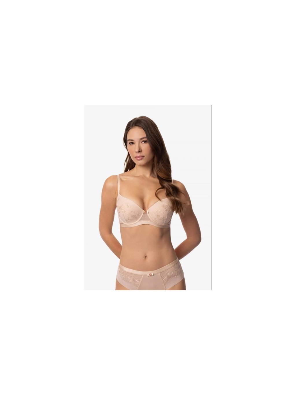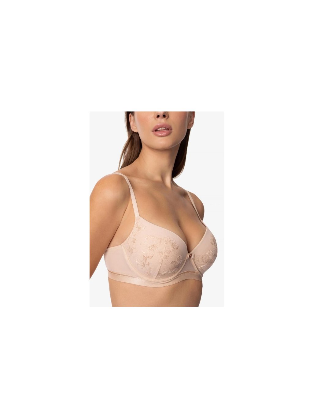 Push-up podprsenka s tvarovanými košíčkami a kosticami. Jemná výšivka v telovom odtieni splýva s pokožkou a je zvýraznená decentne trblietavými zlatými detailmi. SERENE je vytvorená pre ženu, ktorá oceňuje pokojnú eleganciu a precízne spracovanie. Eleganciu podčiarkujú komponenty v rose-gold farbe. Produkt bol navrhnutý a vyvinutý v Estónsku!