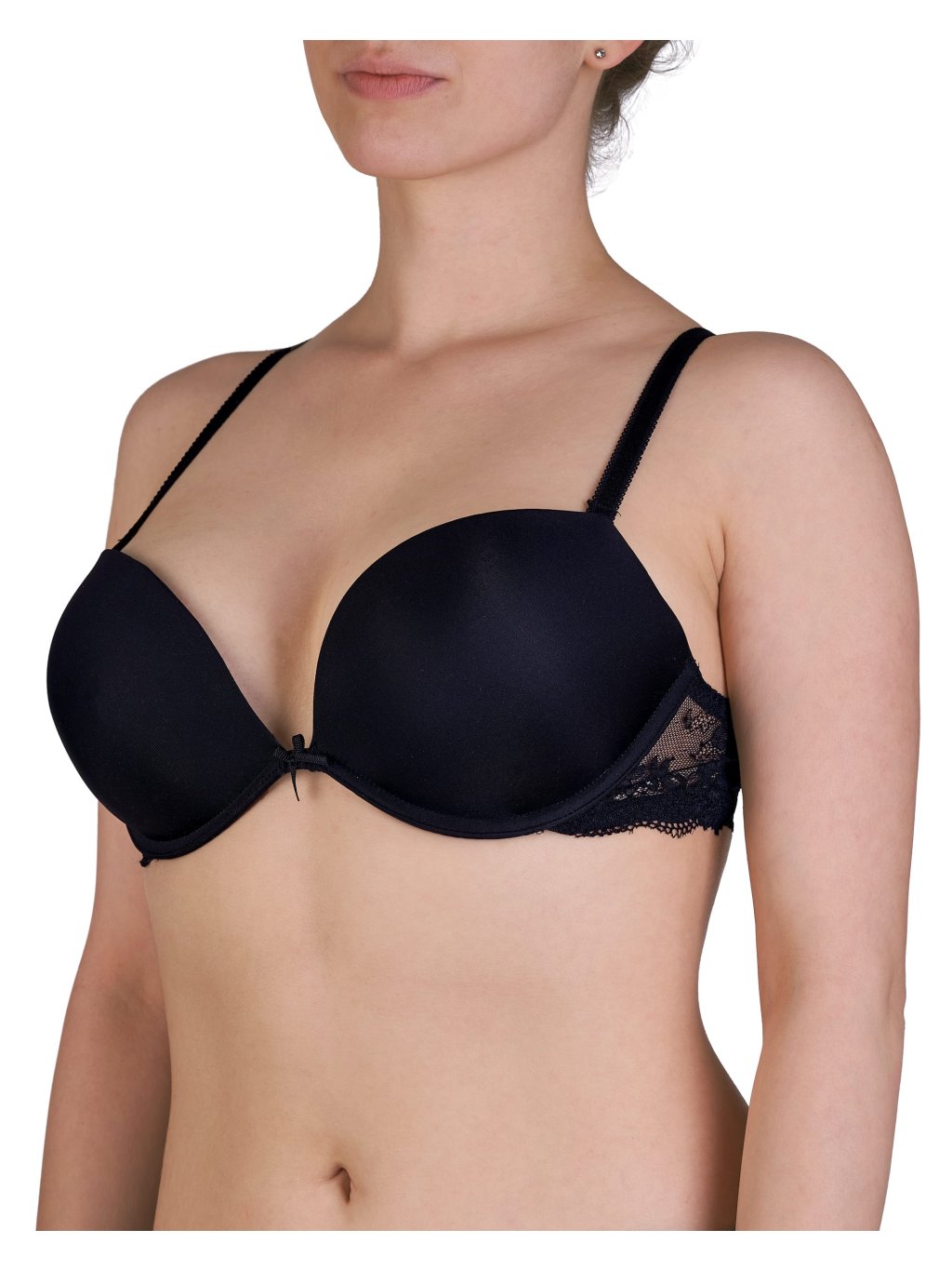 Super push up podprsenka s kosticami Vám vďaka dvojitej push up gélovej výplni zväčší poprsie až o dve veľkosti a vytvaruje dokonalý guľatý dekolt. Podprsenka má elegantný vzhľad; čomu prispieva nádherná čipka; ktorá sa nachádza po obvode podprsenky. Podprsenka má nízky stred; takže je vhodná pod oblečenie s hlbokým výstrihom. Ramienka sú odopínacie a dĺžkovo nastaviteľné. Podprsenka je ukončená viacstupňovým zapínaním na 2 háčiky a 4 pozície.