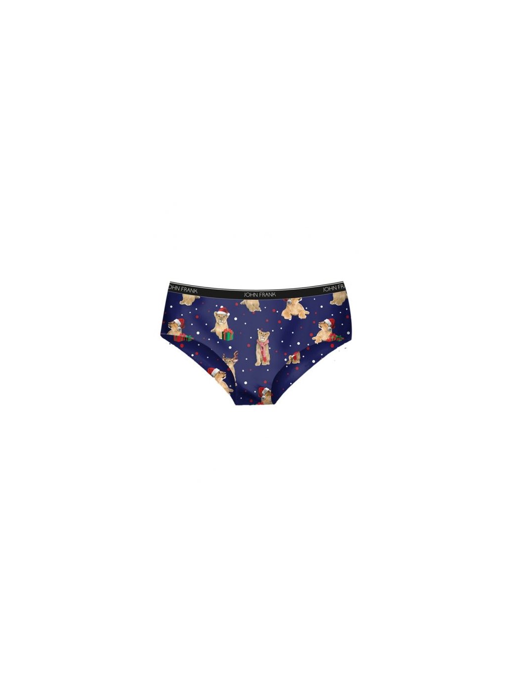 Dámske nohavičky strihu hipster od značky John Frank z vysokého podielu bavlny. Nohavičky s módne spracovanou potlačou sú veľmi príjemne na dotyk a pohodlné na nosenie. Jemná; stredne široká guma na páse má po obvode logo John Frank. Do vnútorného dielu je zapracovaný bavlnený klin pre komfortné nosenie.