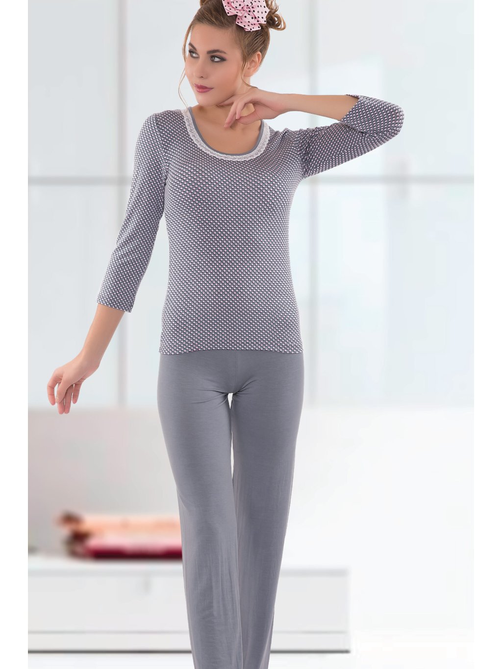 Dámska nočná košeľa značky Secret je vzorovaná viskózová košeľa doplnená o elastan. Nočná košeľa je jemne obtiahnutá; siaha pod stehná; má trojštvrťové rukávy ukončené riaseným lemom. Okrúhly výstrih je doplnený o čipku; ktorá sa nachádza aj na leme spodnej časti tejto nočnej košele. Nočná košeľa je bodkovaná a pohodlná na nosenie.